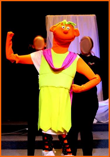 Our Human Arm puppets can also be made into full body puppets. The photo to the right shows one of our THP Family churches have turned Dexter into Goliath. If you want to impress your crowd and create the “WOW Factor” for your performance, these are the puppets to have. NOTE: Clothing styles and colors may vary with availability. |